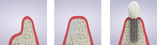 The procedure involves filling the area the missing tooth or teeth used to occupy with bone graft granules. The granules looks similar to sand and can be made from your own available bone, freeze-dried human or processed animal bone from a tissue bank, or a mineral bone substitute. Your own bone is the most effective graft material and can be extracted from parts of your body where sufficient bone exists. Your doctor will then close up the area with sutures. Over time the graft material will integrate with the surrounding bone tissue and restore the area to a suitable bone capacity.
